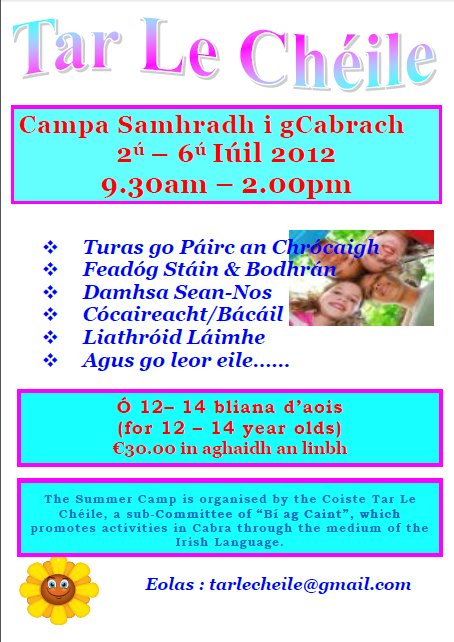 Míle buíochas to Dublin City Council for supporting my request for funding for an Irish Camp in Cabra this summer. The camp is being run by local perants and is open to any young children in the area from 12yrs.